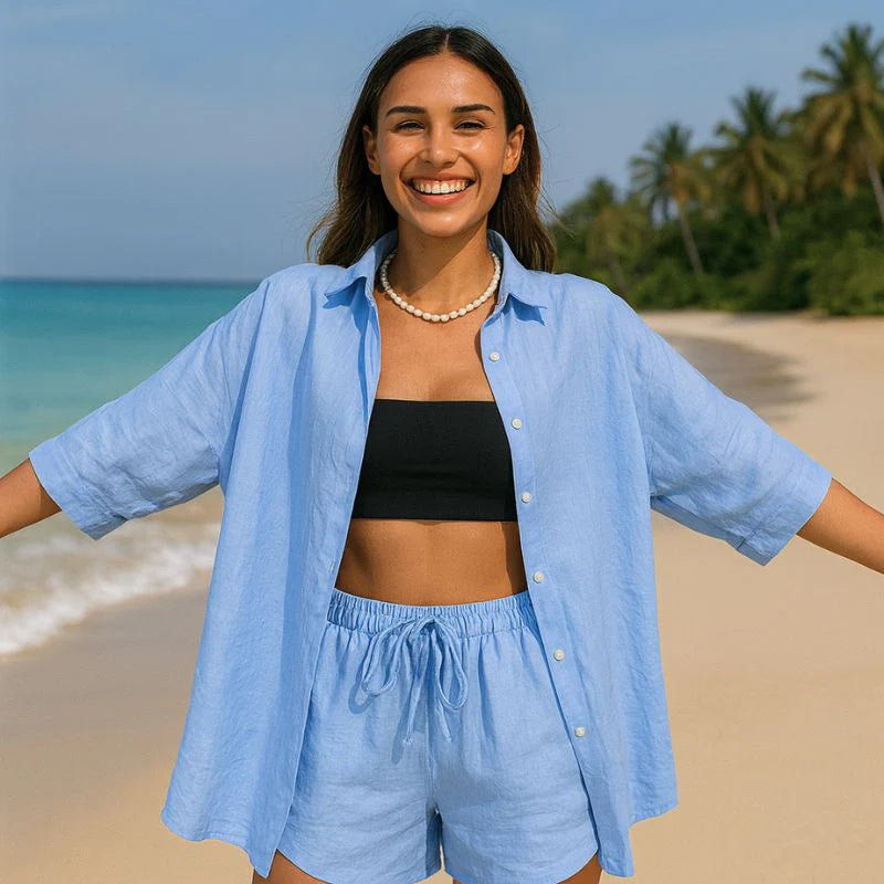 O Conjunto Verano traz a leveza do linho com caimento impecável, ideal para os dias mais quentes. Versátil e elegante, pode ser usado tanto em momentos casuais quanto em produções mais refinadas. Um conjunto que une frescor, estilo e praticidade para mulheres que sabem o que querem.COMPRAR AGORA