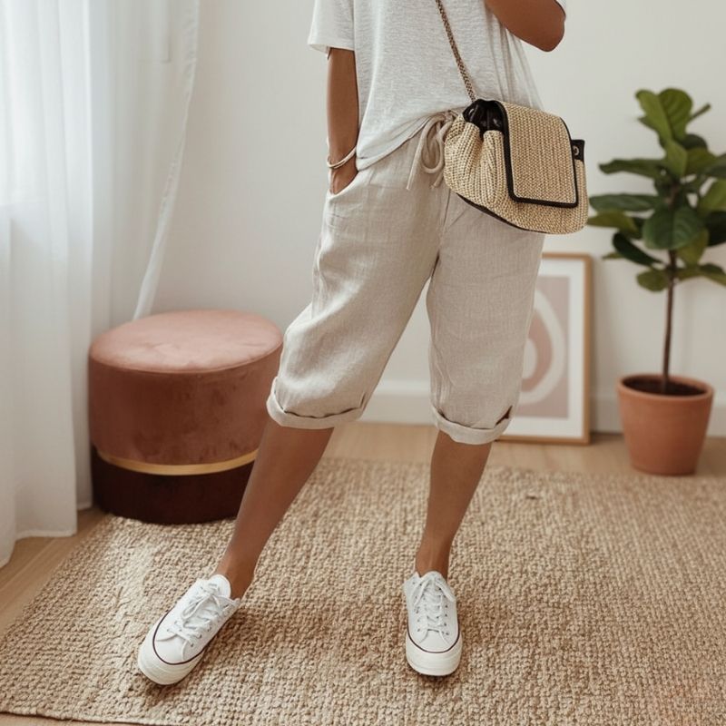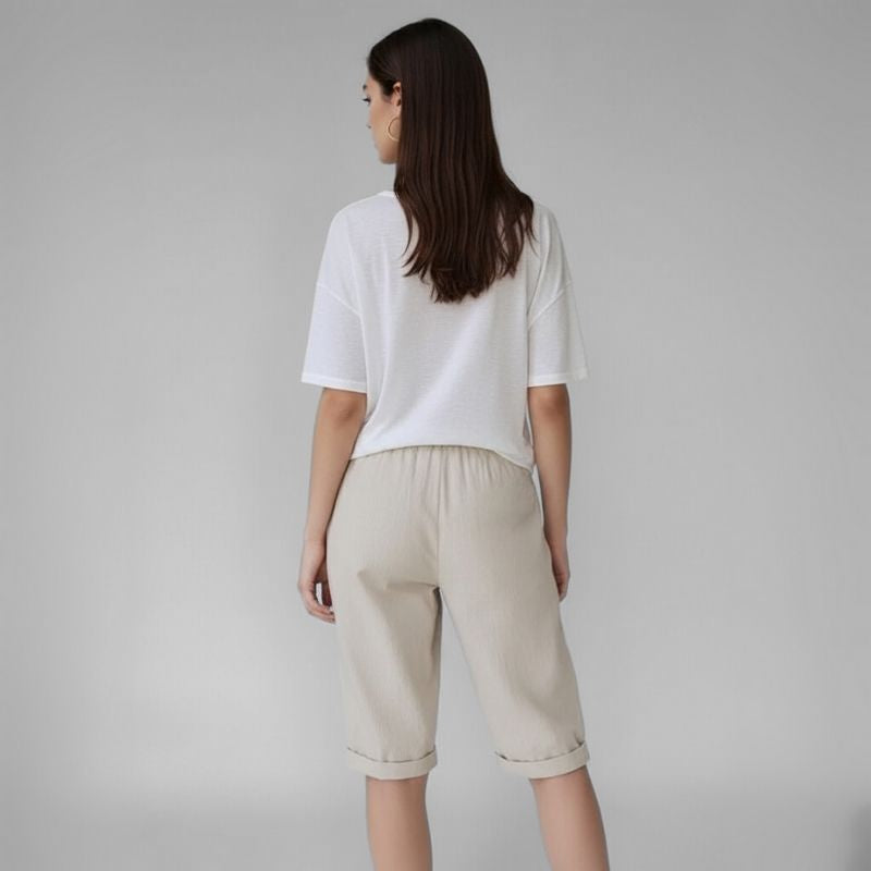 Não perca a oportunidade de garantir um visual moderno e confortável! Adquira agora a sua Bermuda Feminina Soltinha Algodão Bege Belle e destaque-se com muito estilo e praticidade!