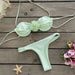 Possui uma flor que você pode escolher amarrar na lateral da calcinha, no sutiã, ou no pescoço como uma gargantilha.