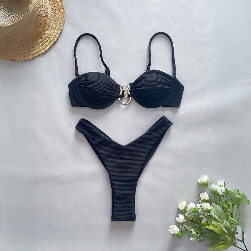 Biquíni Asa Delta Canelado Sun é uma peça elegante e moderna que combina um design sofisticado com conforto. Perfeito para dias de sol à beira da piscina ou na praia, este biquíni realça a sua beleza com um toque de brilho.
