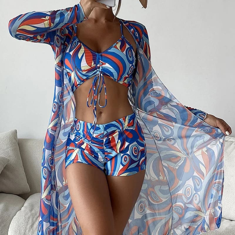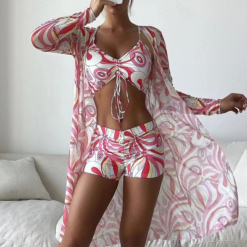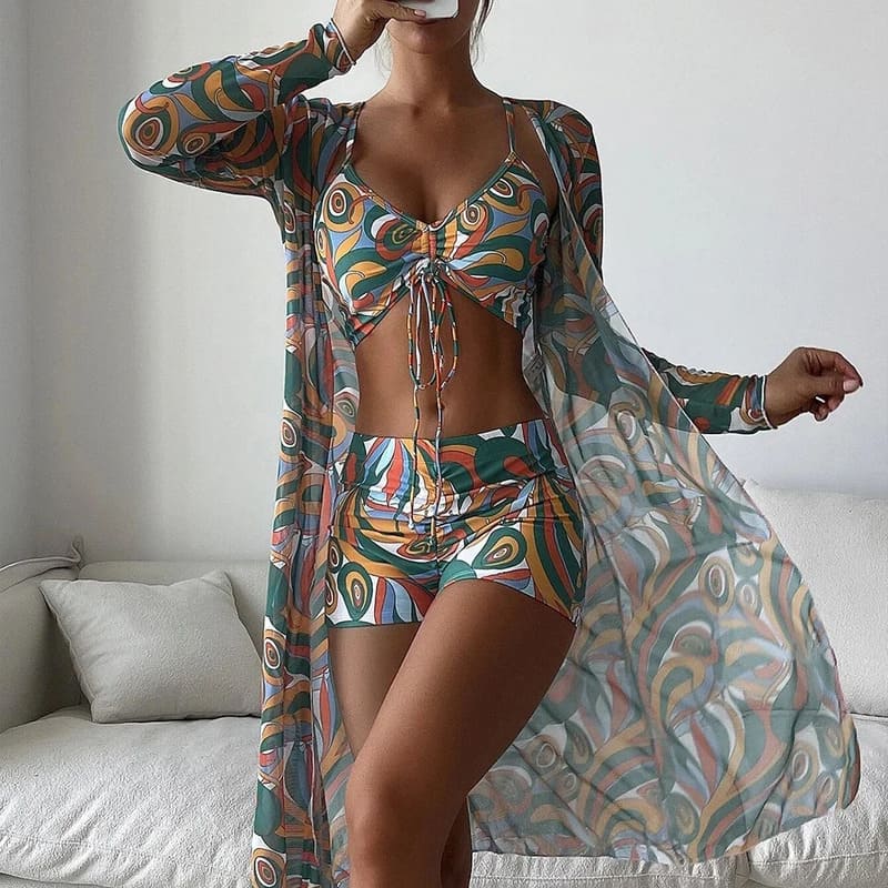 Adicione um toque de elegância nas suas férias. Adquira Biquíni Short Cintura Alta e Saída de Praia e sinta a transformação!