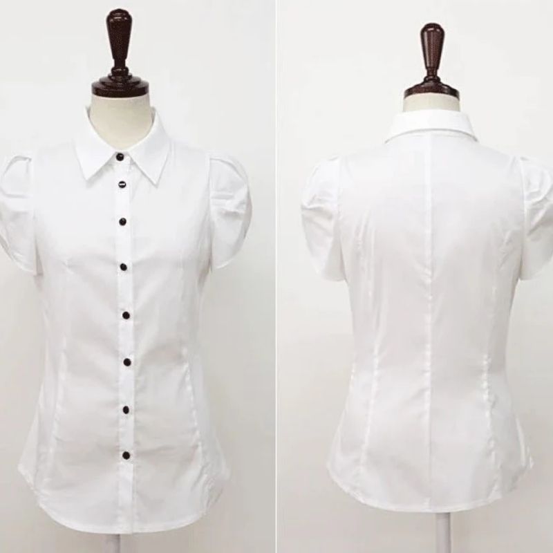 Pronta para elevar seu guarda-roupa a novos patamares? Adquira sua Blusa Feminina Social Manga Curta Branca Vaiolet agora mesmo e comece a impressionar com seu visual impecável!