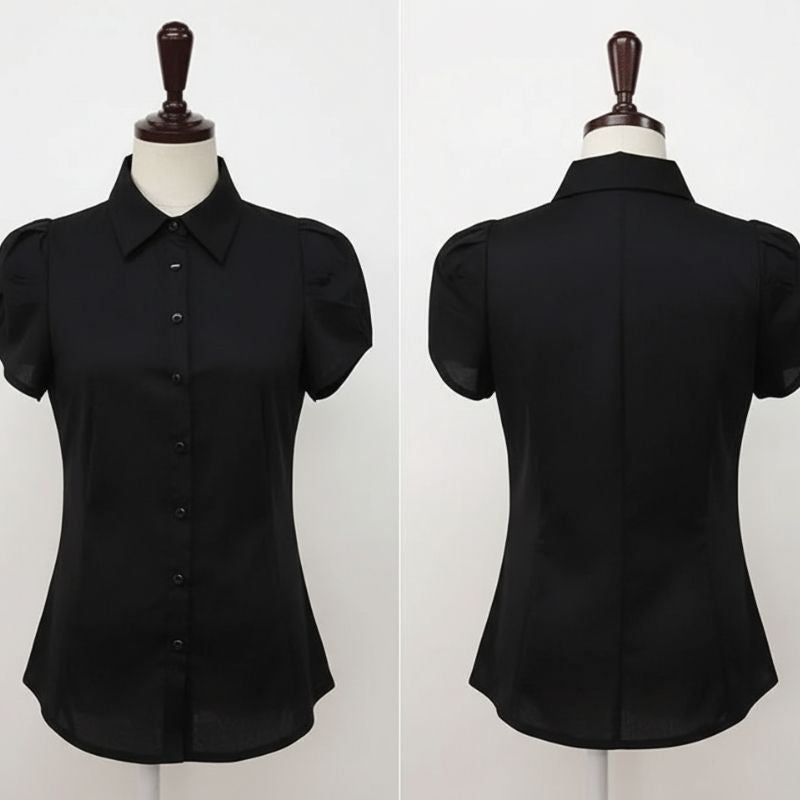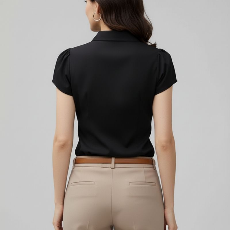 Pronta para elevar seu guarda-roupa a novos patamares? Adquira sua Blusa Feminina Social Manga Curta Preta Vaiolet agora mesmo e comece a impressionar com seu visual impecável!