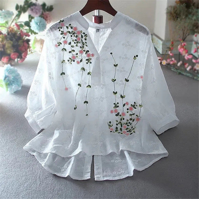 Encante-se com a delicadeza e a beleza artesanal da Blusa Laise Feminina Bordada Marry, uma peça que combina elegância e frescor de forma única.