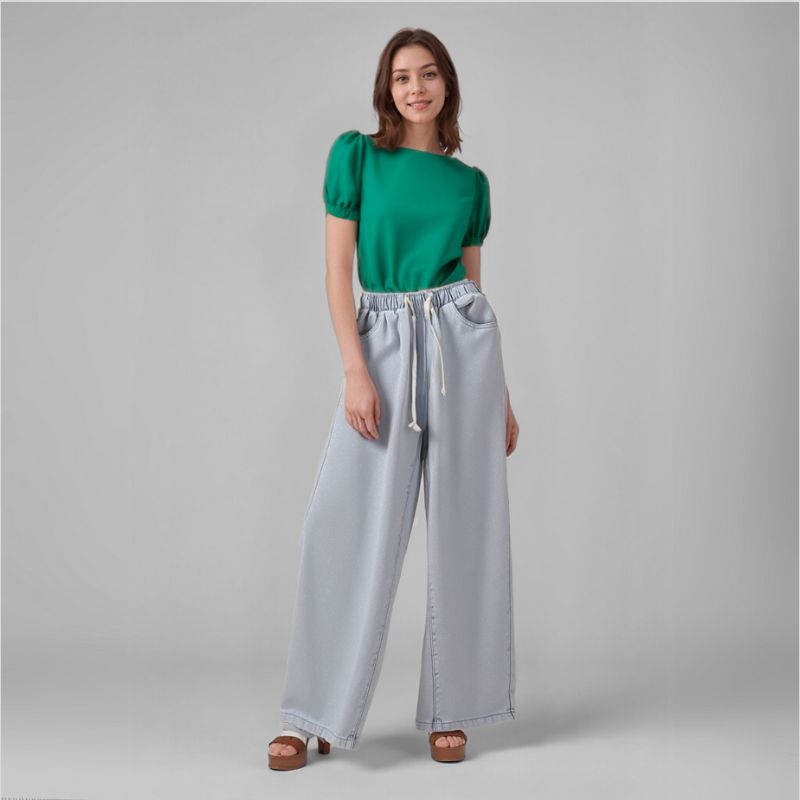 A modelagem wide leg alonga as pernas e equilibra a silhueta com fluidez e caimento impecável — um clássico que combina com tudo.