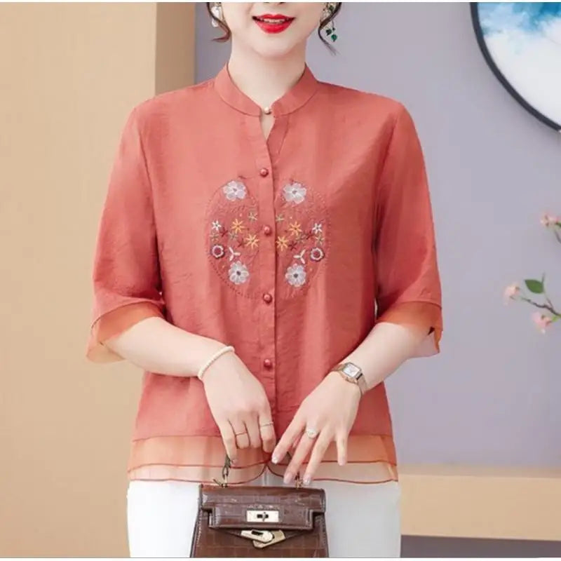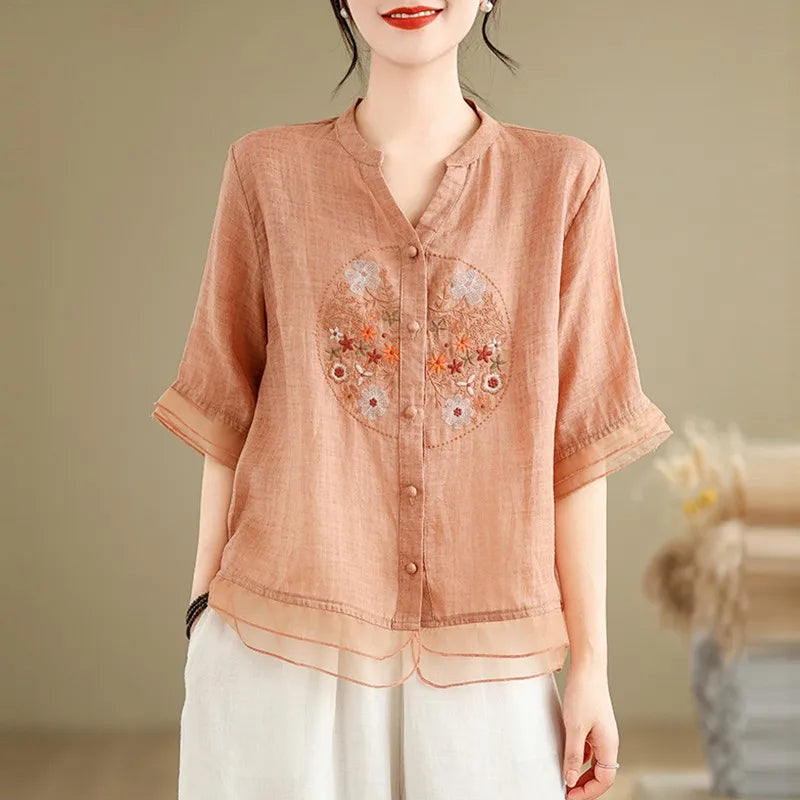 Adicione a Camisa Feminina Floral Gola V Adhalia ao seu guarda-roupa e desfrute de um visual refinado, confortável e atemporal, feito para acompanhar a mulher elegante em todas as fases da vida.