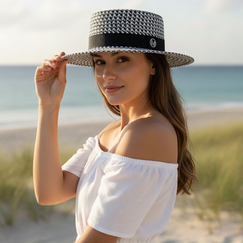 O Chapéu De Praia Feminino Maison traduz a essência da sofisticação em um acessório versátil e atemporal. Com seu design estruturado de copa reta e aba média, ele une elegância e modernidade em um visual que combina perfeitamente com os dias ensolarados e produções de verão.