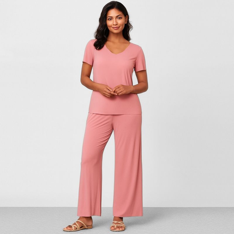 Com um caimento soltinho e tecido leve, este conjunto oferece o máximo de conforto sem comprometer o estilo.