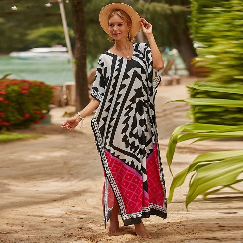 A modelagem kaftan proporciona liberdade total e um caimento impecável, perfeito para dias em que você deseja estar à vontade sem perder a sofisticação.