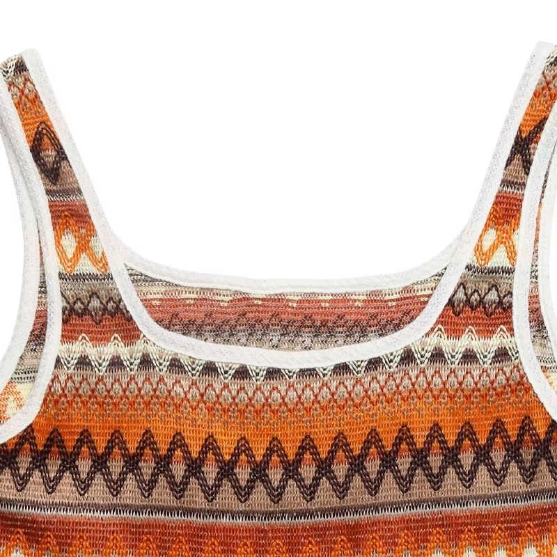 Com estampa étnica vibrante na parte superior e caimento fluido na parte inferior, o macaquinho valoriza o corpo de forma leve e confortável.