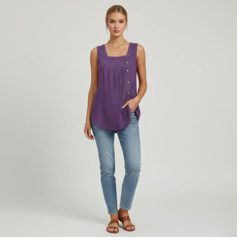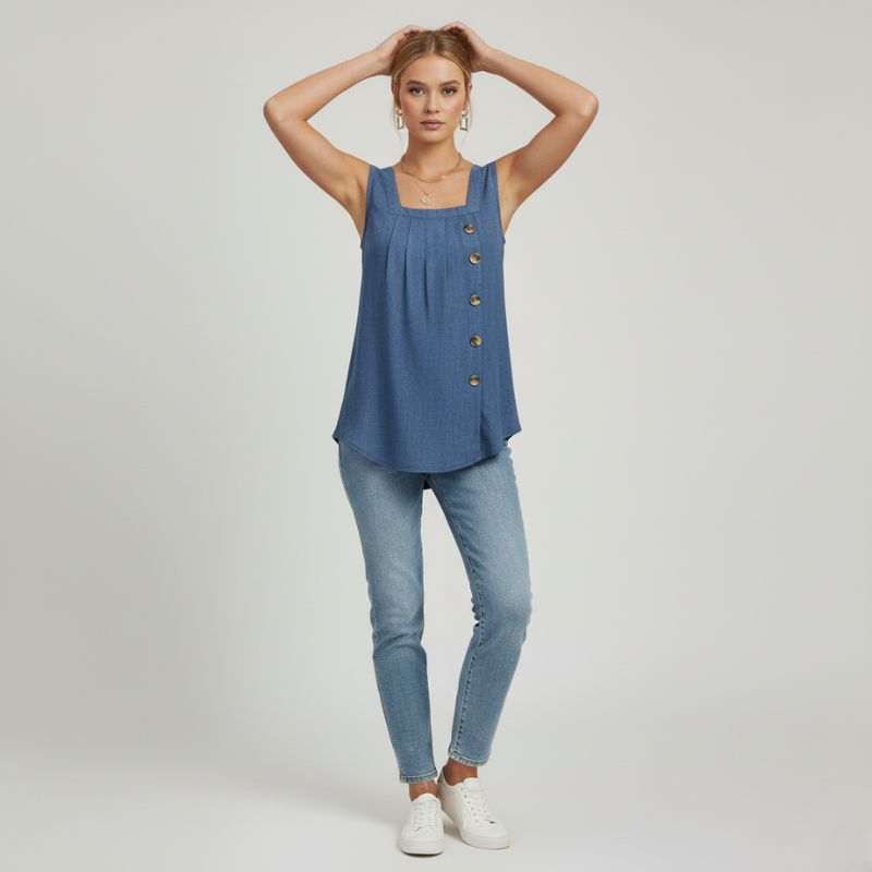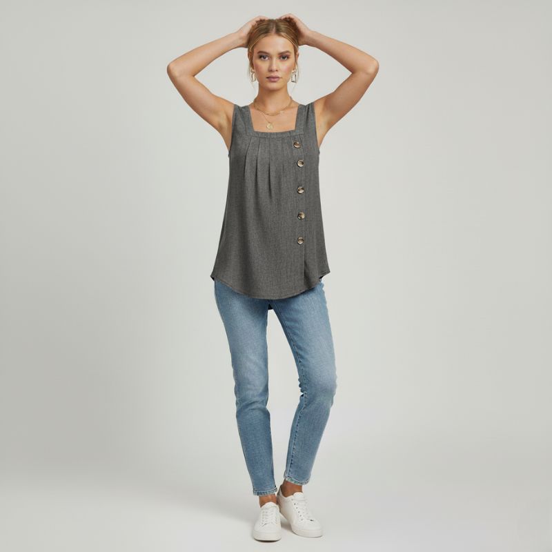 Garanta já a sua Regata Feminina Botões Isabel e arrase no estilo! Clique aqui para comprar agora e aproveite o conforto e elegância que você merece!