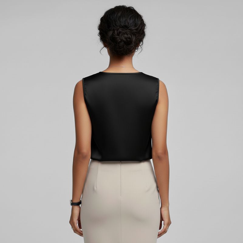 O brilho discreto da seda realça o visual, tornando a regata ideal para looks de trabalho, encontros especiais ou ocasiões sociais. Combine facilmente com alfaiataria ou jeans.