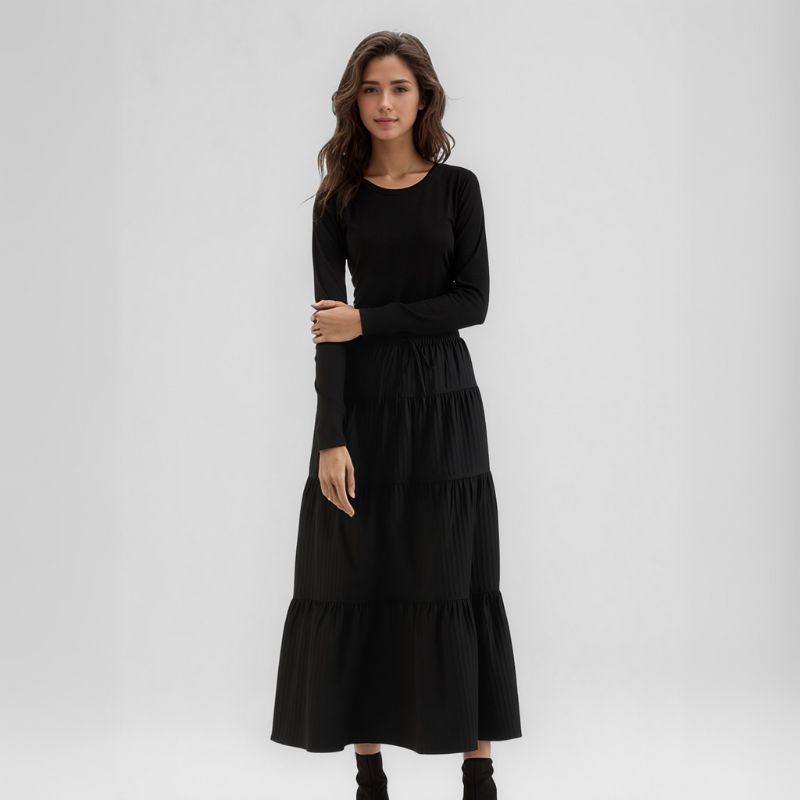 A Saia Longa Preta Ketty une sofisticação, conforto e versatilidade em uma peça atemporal que valoriza qualquer estilo - ideal para te acompanhar em todas as ocasiões com leveza e charme.