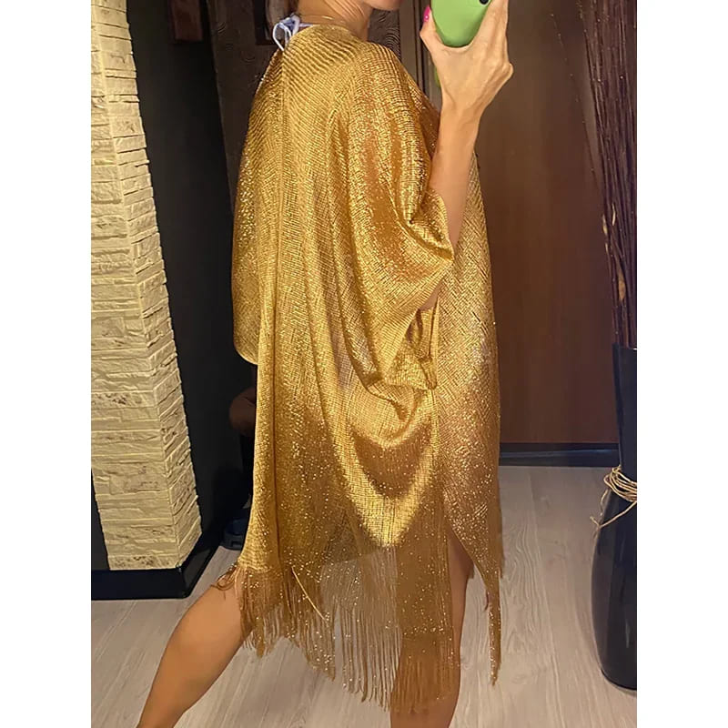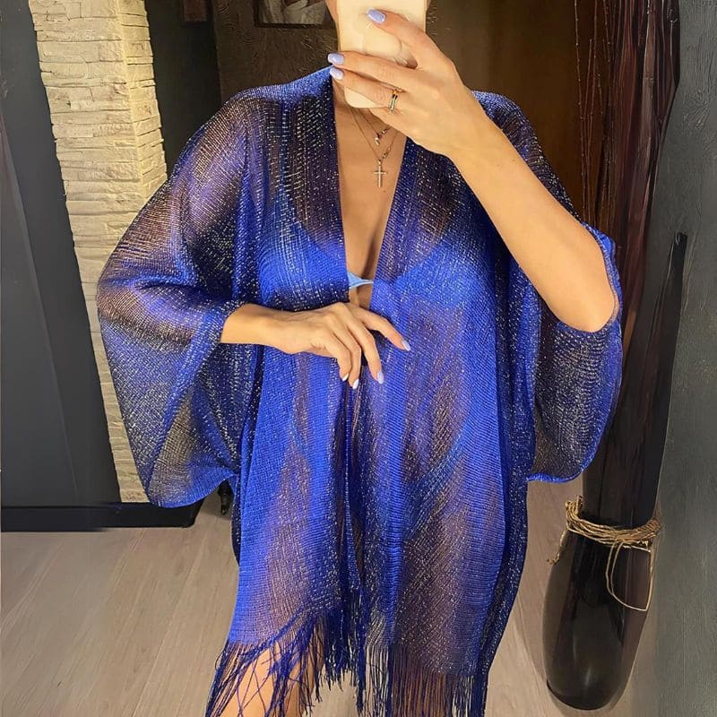 Apresentamos a Saída de Praia Brilhosa Verano, sua companhia perfeita para brilhar onde quer que vá. Deixe sua elegância e estilo reluzirem com esta peça deslumbrante. Feita para atrair olhares, cada detalhe dessa saída de praia combina charme e elegância.