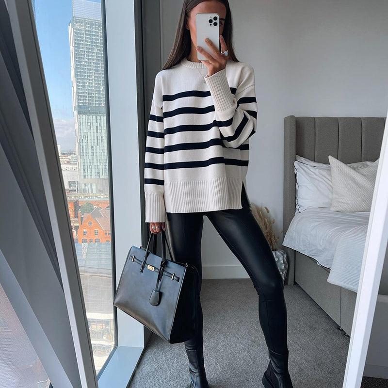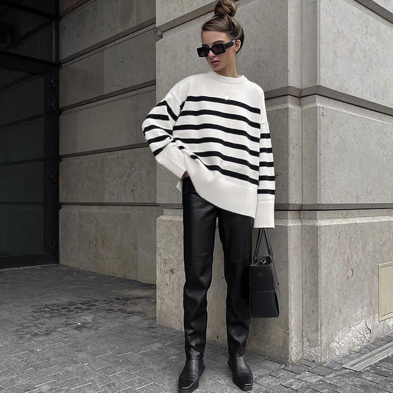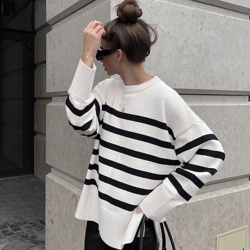 Suéter feminino listrado Flórida é a peça perfeita para adicionar um toque de estilo e conforto ao seu guarda-roupa. Com um design elegante e moderno, o suéter é ideal para diversas ocasiões, desde um passeio casual até um encontro descontraído com amigos.