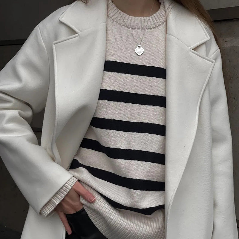 Mantenha-se aquecida e estilosa com o Suéter Feminino Listrado Flórida. Adquira já a sua e sinta o conforto e a elegância que esta peça pode oferecer!