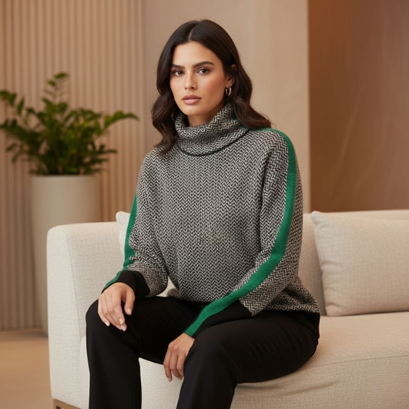 Sinta-se envolta em sofisticação com a gola alta deste suéter, que adiciona um toque de classe a qualquer look.