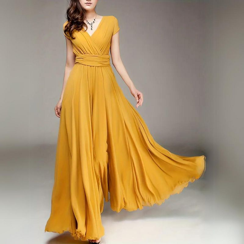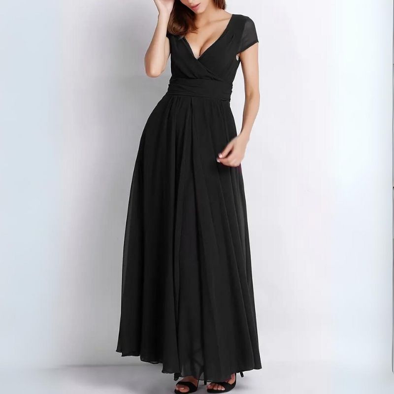 Eleve seu estilo para um novo patamar com o Vestido Longo De festa Decote Em V Adalia- Uma peça que une sofisticação e autoconfiança!