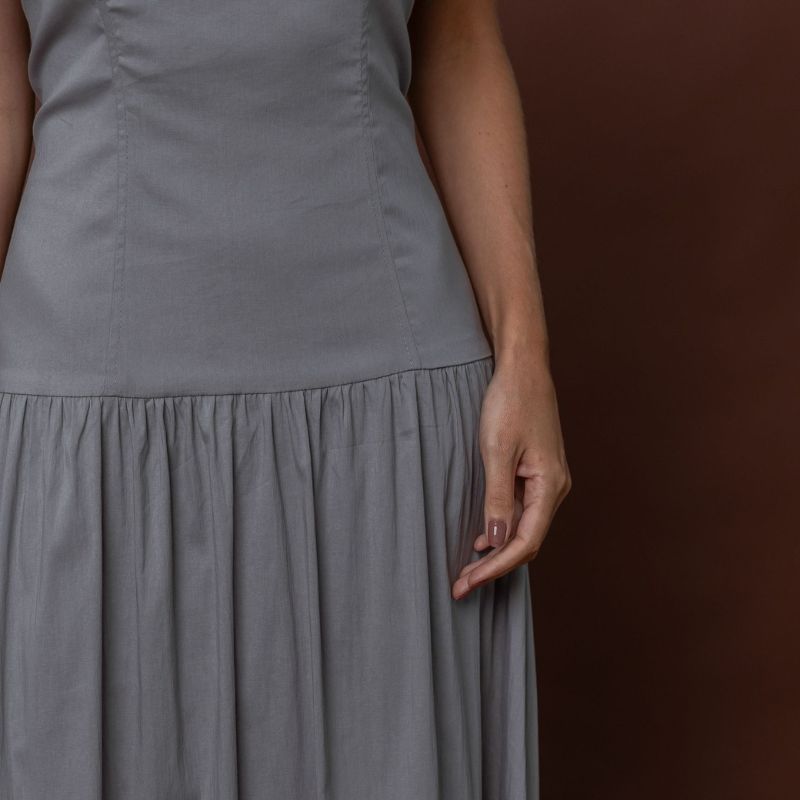 Eleve sua presença com o Vestido Longo Elegante Tricoline Cinza, uma peça que une sofisticação, conforto e versatilidade em cada detalhe.