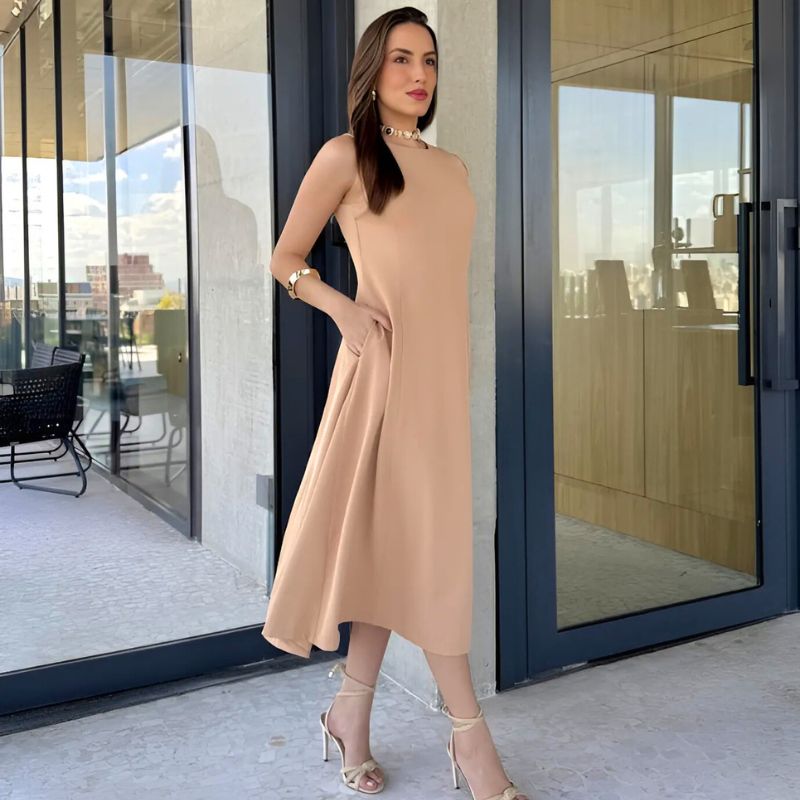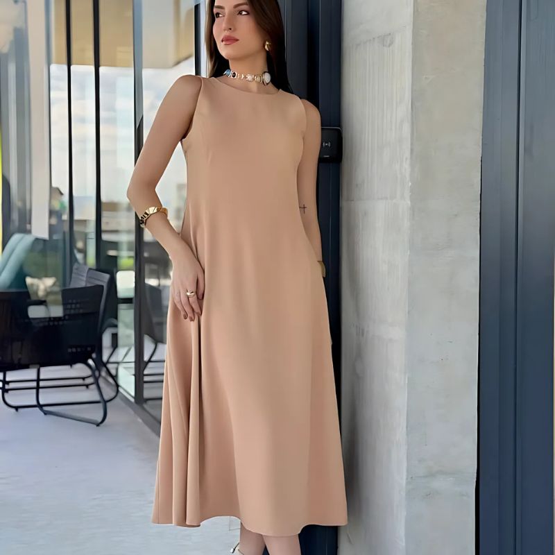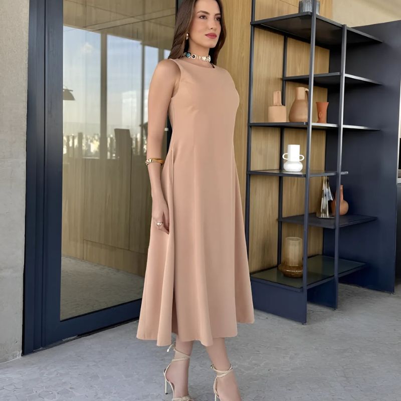 O Vestido Midi Elegante Pêssego Chanel é a expressão máxima do minimalismo sofisticado. Com linhas limpas e caimento impecável, ele foi pensado para mulheres que valorizam elegância atemporal e discrição refinada.