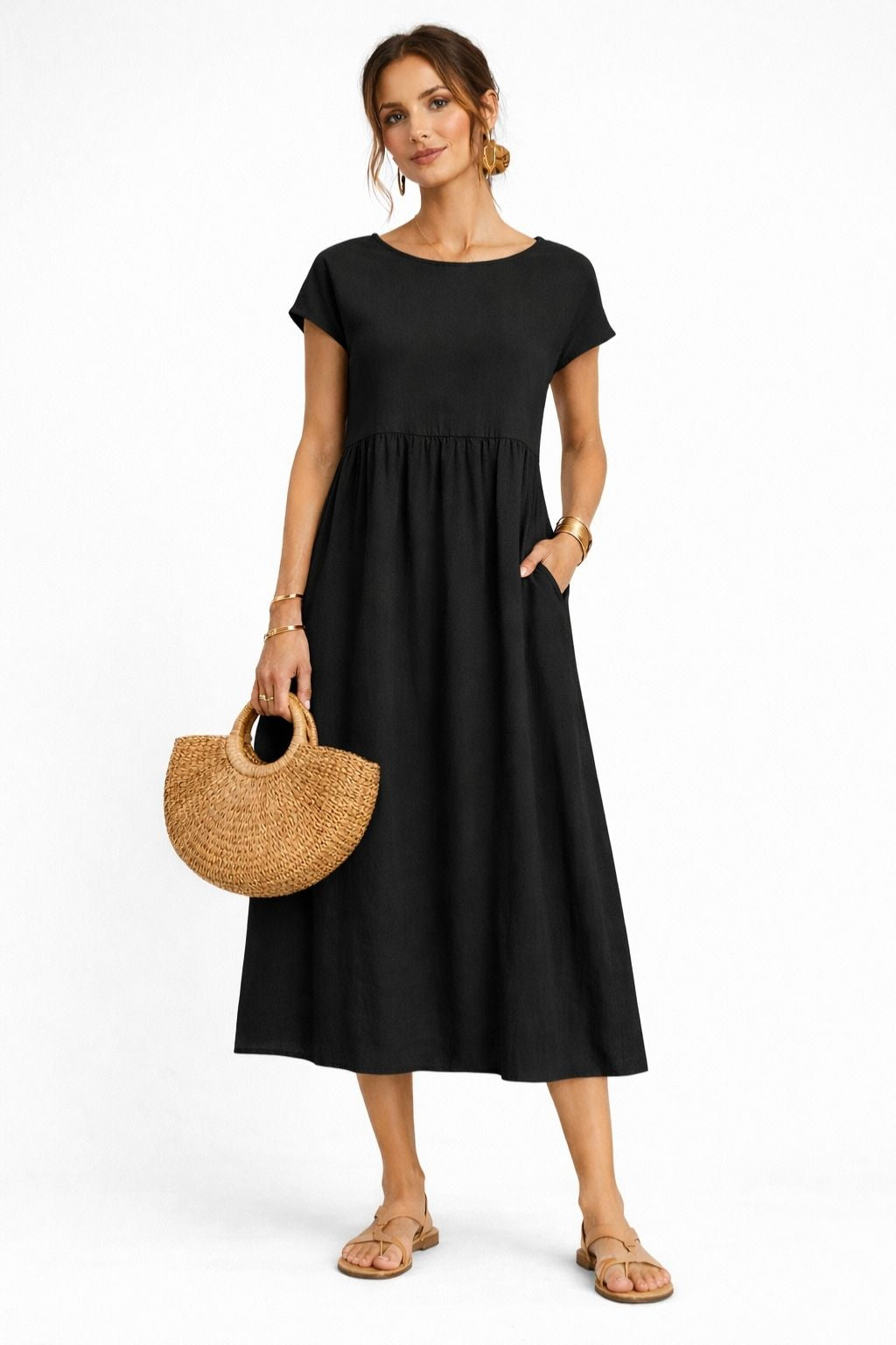 Vestido Midi Manga Curta Pamela combina estilo e conforto em uma peça versátil e elegante. Ideal para diversas ocasiões, desde eventos formais até encontros casuais, este vestido é essencial no guarda-roupa de qualquer mulher que busca praticidade sem abrir mão do charme.