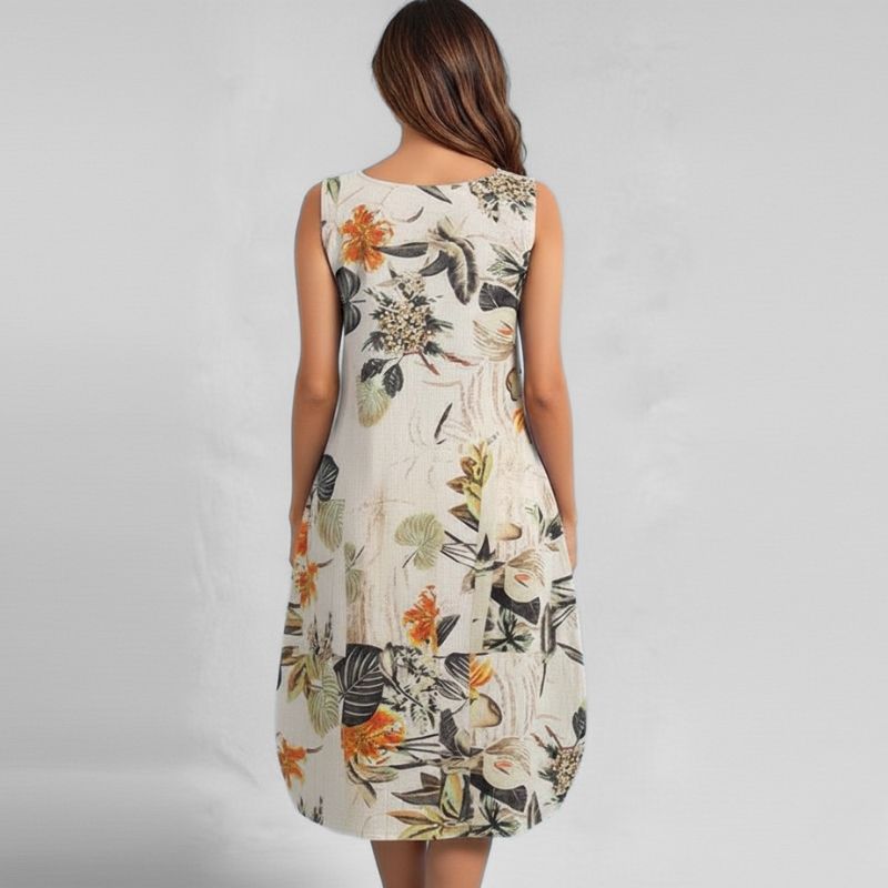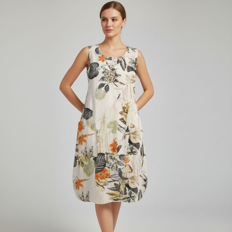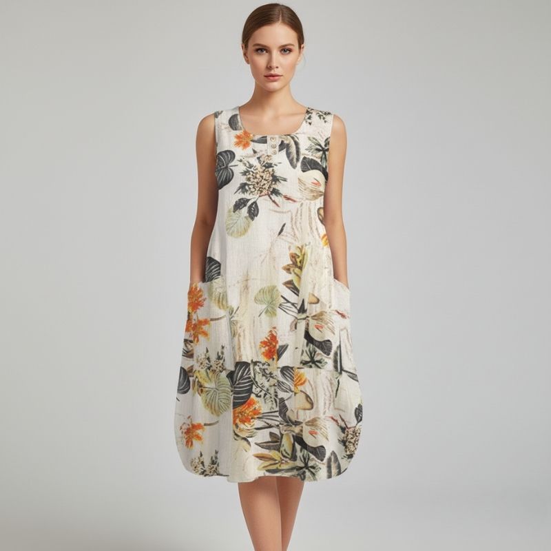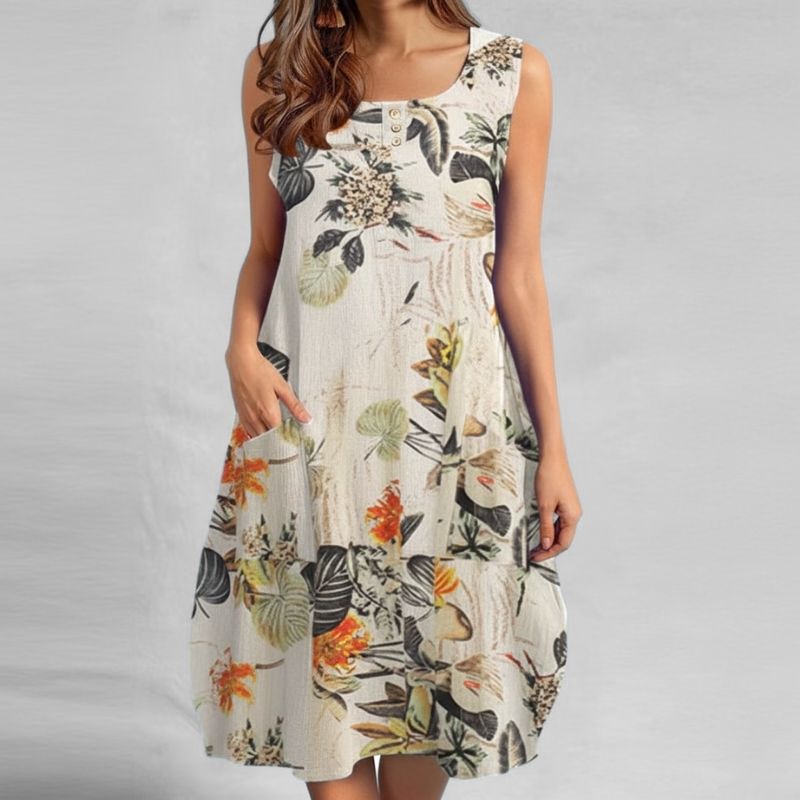 Transforme seus dias de verão com o Vestido Midi Soltinho Bege Sem Mangas Hailey! Adquira o seu agora e aproveite o máximo de conforto e estilo!
